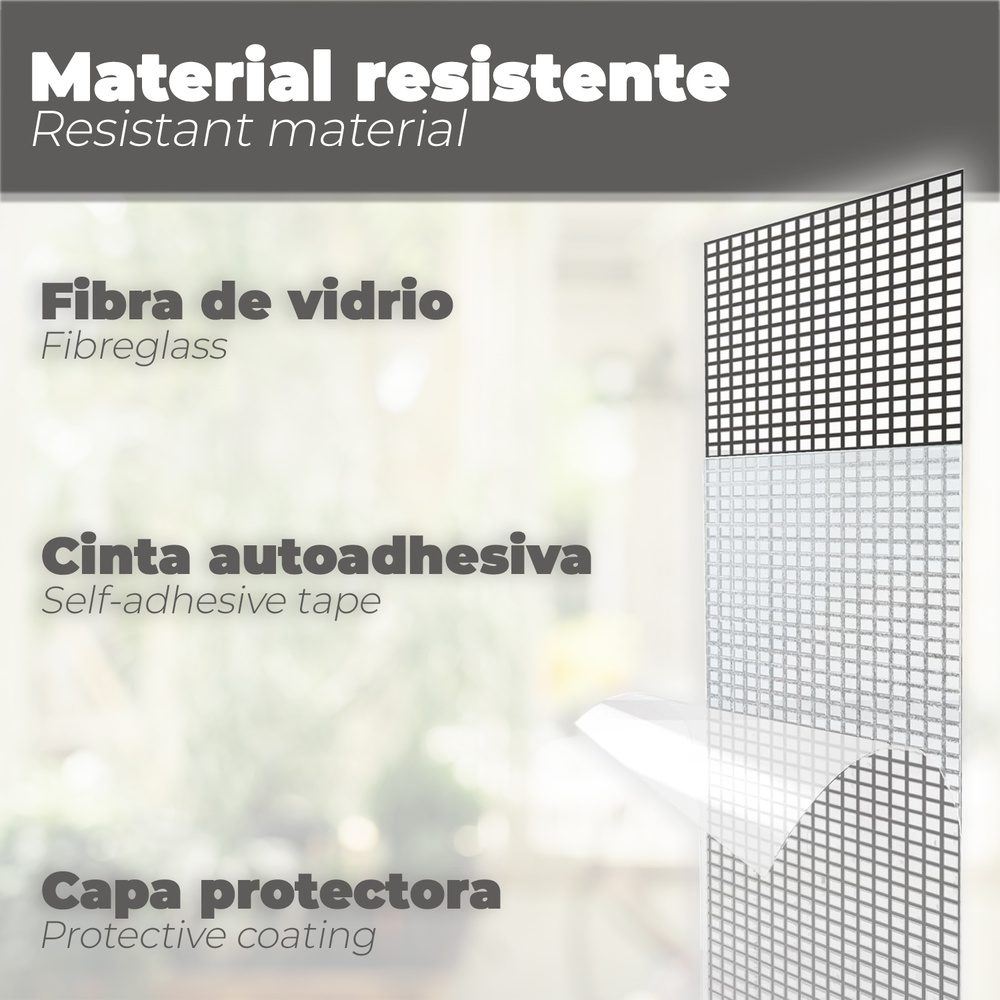– Artículo también conocido como cinta reparación mosquitera, kit reparación mosquitera, protección contra insectos, etc.