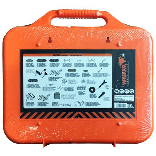 - 18 bandas de lija grandes , 20 bandas de lija pequeñas, 8 discos de fieltro , 1 disco de hojas de lija , 1 bote de discos de lija de 20mm ( 25ud) , 1 bote de pasta pulir, 2 bote de disco