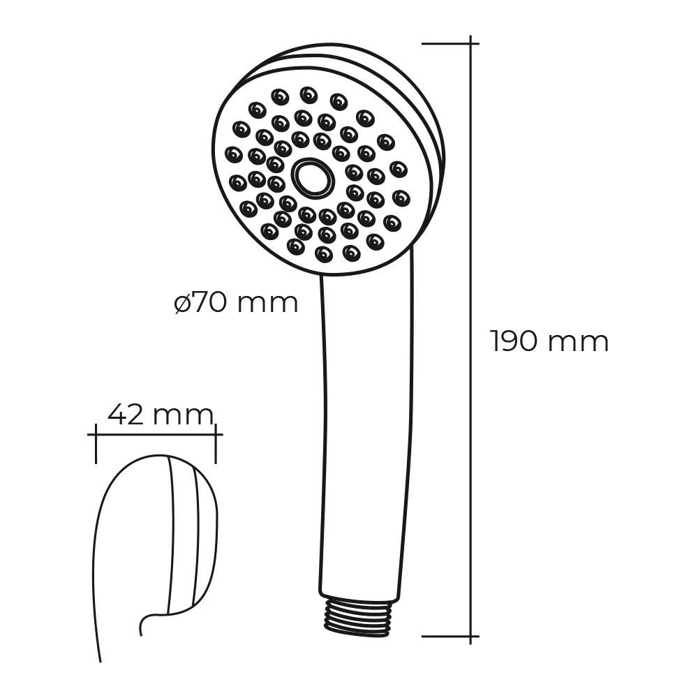 MANGO DE DUCHA ANTICALCAREO. 1 FUNCION. DIMENSIONES: Ø7×4,2x19cm (diámetro/fondo/alto) COLOR CROMO.