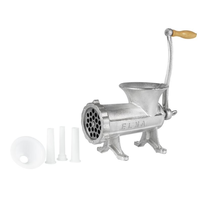 Realizada en hierro fundido, lo que la convierte en un producto robusto y duradero de gran calidad. Tiene la función de embutadora, acoplando el set de embutidos