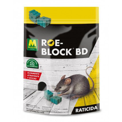 Este raticida es resistente a la humedad, lo que lo convierte en una opción ideal para su uso tanto en interiores como en exteriores, incluso en condiciones húmedas. Además, Roe-Block incorpora un aditivo amargo, una medida de seguridad adicional para prevenir la ingestión accidental por parte de personas o animales no diana.