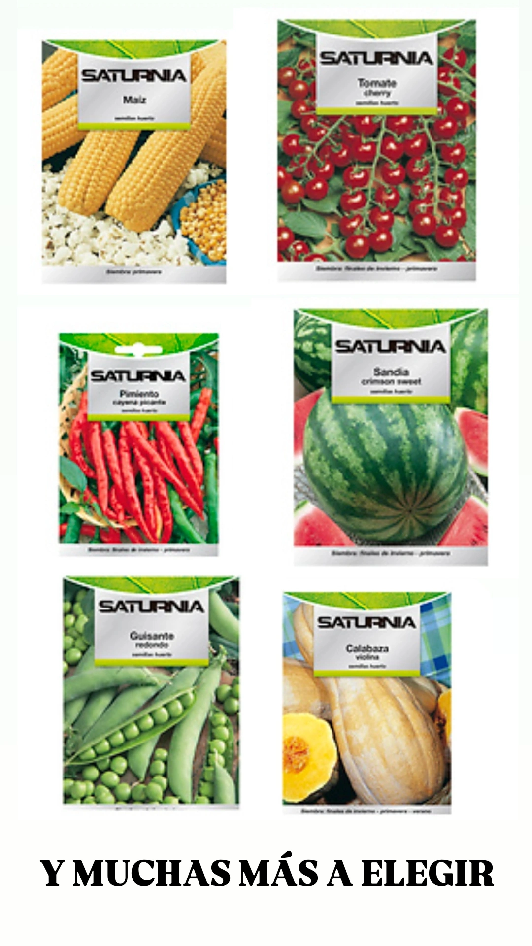 | Semillas | Acelga, Brocoli, Calabacín Claro, Calabacín Verde, Calabaza, Cayena Picante, Cebolla Blanca, Cherry, Grelo Brocoli, Guisantes, Lechuga Reina del Hielo, Maiz, Pepino Marketmore, Perejil, Puerro Largo de Invierno, Sandía, Tomare Redondo |