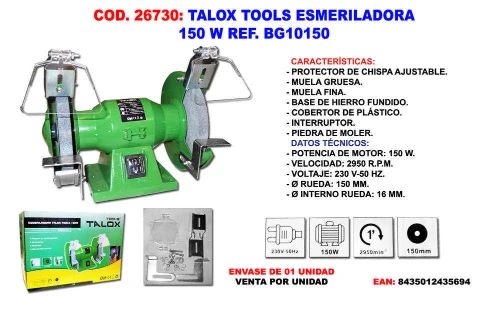 TALOX TOOLS ESMERILADORA 150 W 150 MM